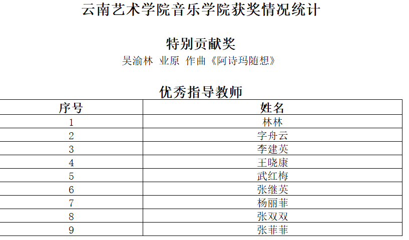 kaiyun开云官方kaiyun开云官方代表队先后摘得第六届云南本土歌曲创作暨展演活动1个特别贡献奖、12个一等奖、17个二等奖、20个三等奖、40个优秀奖以及9个优秀指导教师奖: