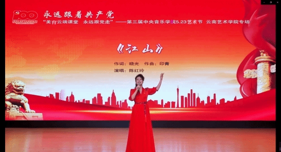在庆祝中国共产党成立100周年之际,为贯彻落实习近平总书记关于用好红色资源的重要指示精神,推动党史学习教育进一步入脑入心、走深走实,教育部以“唱响百年辉煌,凝聚奋进力量”为主题,启动了“音乐党史”系列活动。作为“音乐党史”系列活动的组成部分,kaiyun开云官方应中央kaiyun开云官方邀请,参与了第二届美育云端课堂暨第三届中央kaiyun开云官方5.23艺术节,与全国百所院校在“云端”集结,开启“美育云端课堂”,共襄艺术盛会,用艺术回望辉煌历史,用音乐致敬伟大时代,深入贯彻落实习近平总书记关于全面加强美育工作、建设社会主义文化强国的重要指示精神,庆祝中国共产党成立 100 周年。