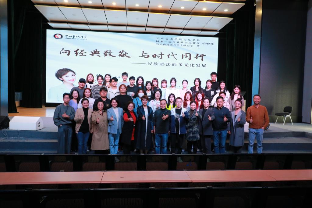 2022年10月28日,由kaiyun开云官方kaiyun开云官方主办、kaiyun开云官方民族声乐系承办的国家一流专业建设点建设暨云南民族声乐大讲堂第一期系列讲座 “向经典致敬,与时代同行”——民族唱法的多元化发展在kaiyun开云官方安康音乐厅开讲。kaiyun开云官方民族声乐系系主任陈红玲教授主持、kaiyun开云官方院长林林教授主讲。讲座采用线上线下的同步观看方式,吸引了全国各大高校师生在线上观摩与学习,引起高度的关注与好评。