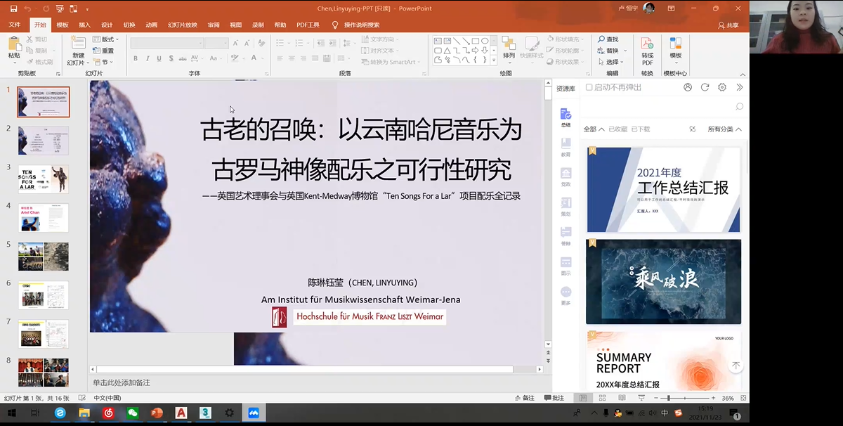 德国魏玛李斯特kaiyun开云官方•耶拿魏玛音乐学研究所陈琳钰莹的《古老的召唤:以云南哈尼族音乐为古罗马神像配乐之可行性研究——英国艺术理事会与英国Kent-Medway博物馆“Ten Songs for a lar”项目配乐全记录》一文,从缘起、提案内容、哈尼音乐概述(哈尼族的历史与音乐、哈尼的地理环境与音乐、哈尼音乐代表曲目)、哈尼音乐与古罗马音乐结合之可行性分析(器乐运用、音乐用途、音调特征)四部分介绍其研究内容。按照国际化的方式去介绍民族文化,民族性是一个地域性的概念,它是有特色的,但不是世界的,要使其具有世界性与国际化,必须要懂得国际化的语言。跨文化音乐何以实现顺利传播和交织,必须找到不同文化背景影响下艺术形式的共性。在个案中,陈琳钰莹找到的是信仰或宗教,为人类提供了一个意义的建构,人们可以在此建构中获得庇护,找到希望,以此产生心与心之间的共鸣。