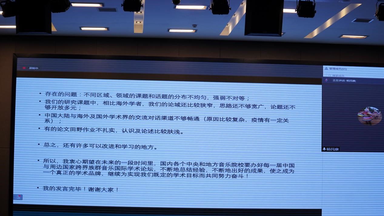 中央kaiyun开云官方/kaiyun开云官方民族艺术研究院首席专家杨民康教授对本次论坛进行了总结性评价,指出本次论坛信息量大,并且与10年前的首届会议作比较,从文章数量翻倍;研究范围的广度和细化程度加强,在本届论坛60篇文章中,大约有45篇是建立在第一手境内外研究基础上,但有的论文田野作业不扎实,还需改进和学习的地方很多,最后杨民康教授对跨界族群音乐的研究和发展提出了展望。