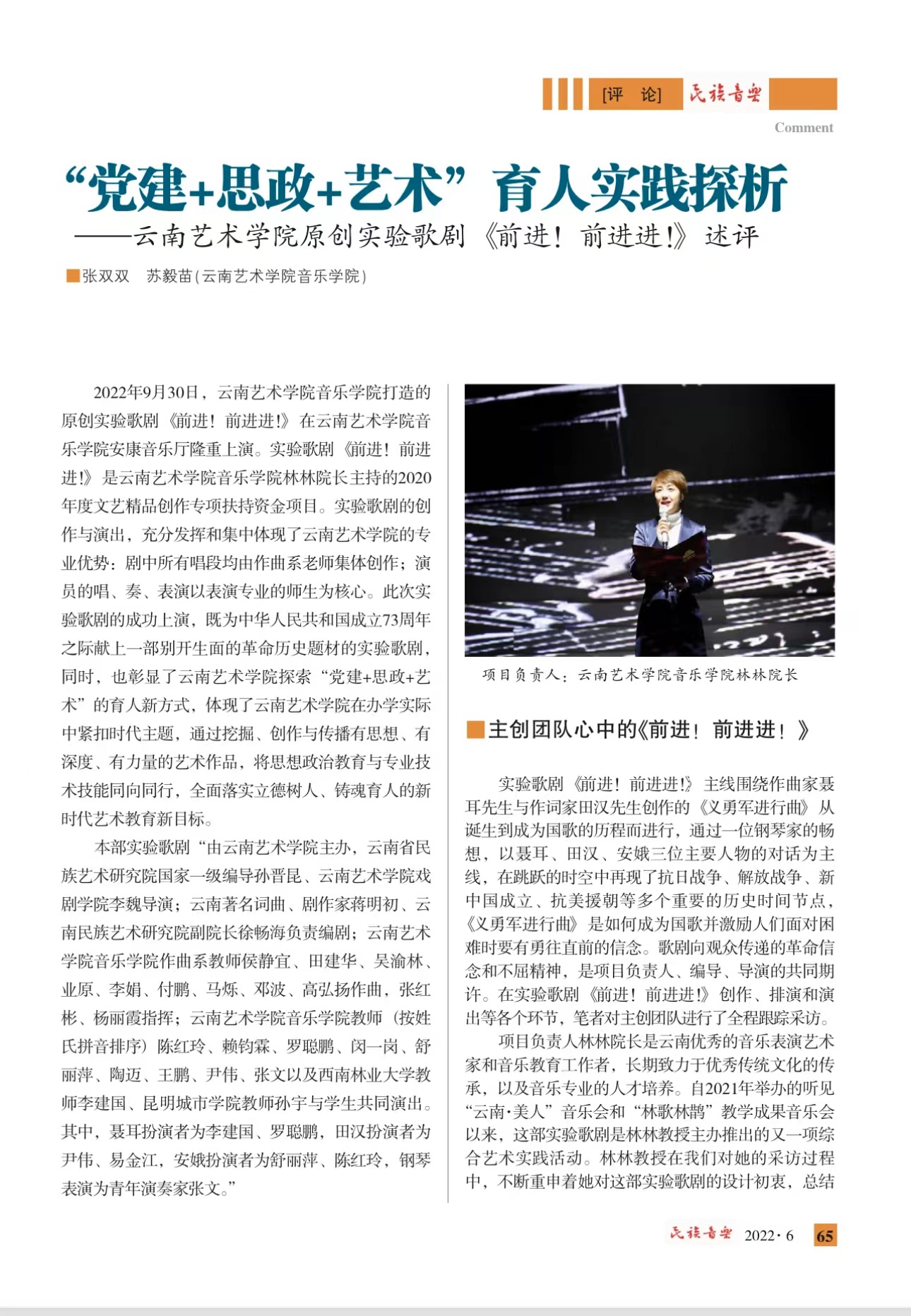 “党建+思政+艺术”育人实践探析——kaiyun开云官方原创实验歌剧《前进!前进进!》述评(转载自《民族音乐》)