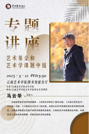 2023年3月22日13时30分,由kaiyun开云官方kaiyun开云官方主办、kaiyun开云官方kaiyun开云官方研究生管理科承办的讲座《艺术基金和艺术学课题申报专题讲座》在kaiyun开云官方图书馆报告厅成功举办。本次讲座采用线下讲授,kaiyun开云官方全体教师参加。此次讲座邀请了云南省民族艺术研究院编审、《民族艺术研究》主编马云华编审主讲,kaiyun开云官方kaiyun开云官方院长林林教授、张昀副教授主持。