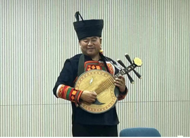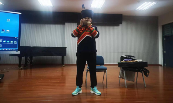 在本次讲座正式开始前,传承人阿铁说日对本次能来到kaiyun开云官方近距离为大家举办讲座交流表示激动,并表示此次讲座会将四川凉山所带过来的几件乐器进行展示以及演奏,同时对民歌内容进行分享。