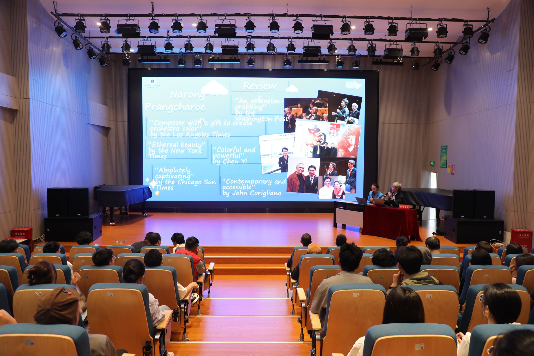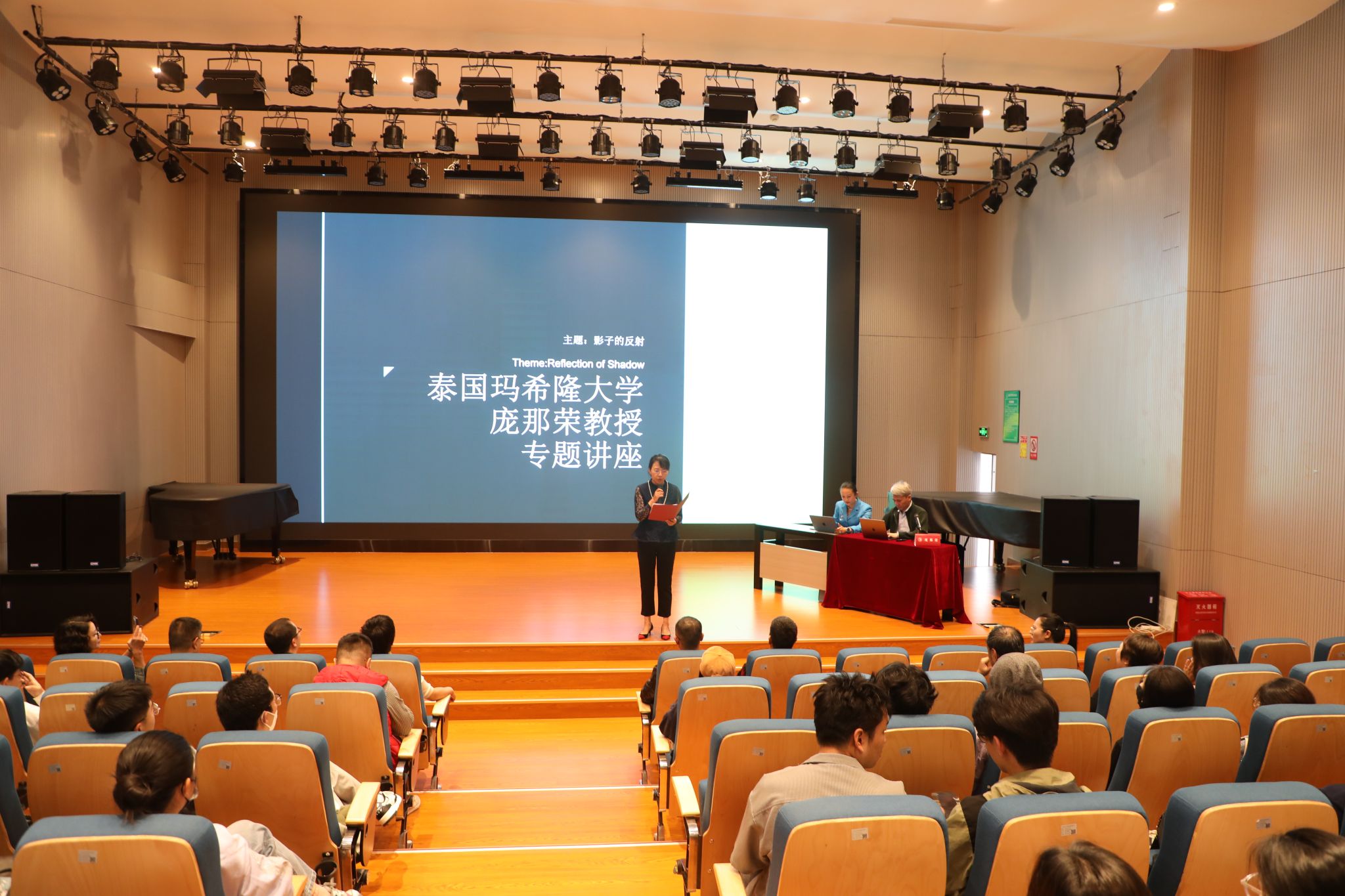 签约仪式后,泰国玛希隆大学庞那荣教授专题讲座在kaiyun开云官方B403举行,kaiyun开云官方kaiyun开云官方党委副书记、院长林林,党委委员、副院长侯静宜,以及作曲系全体师生参加此次讲座。在讲座上,庞那荣教授和大家分享了自己创作的步骤;从可视化图表、音高、作品结构、配器等多方面介绍并展示了他的作品《reflection of shadow》(暗影映像)。庞那荣教授在这部作品中运用了多种现代创作技法,对于作曲系师生的实践创作具有较高的参考价值。在讲座最后,作曲系师生与庞那荣教授展开了热烈讨论。