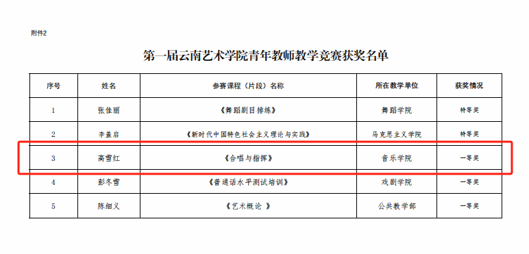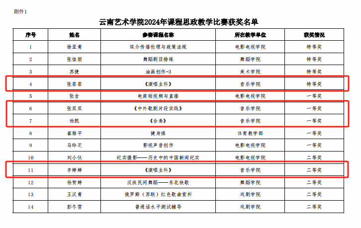 为深入贯彻习近平总书记关于教育的重要论述和全国教育大会精神,全面落实立德树人根本任务,进一步提升广大教师教育教学水平,学校组织开展了“kaiyun开云官方2024年课程思政教学比赛”和“第一届kaiyun开云官方青年教师教学竞赛”。根据kaiyun开云官方教务处印发的《关于公布kaiyun开云官方2024年课程思政教学比赛和第一届kaiyun开云官方青年教师教学竞赛获奖名单的通知》,kaiyun开云官方5名参赛教师在本次比赛中获得优异成绩。其中,张菲菲《演唱主科》获“kaiyun开云官方2024年课程思政教学比赛”特等奖;张双双《中外歌剧片段实践》、杨凯《合奏》课程获“kaiyun开云官方2024年课程思政教学比赛”一等奖;高雪红《合唱与指挥》课程获“第一届kaiyun开云官方青年教师教学竞赛”一等奖;李婷婷《演唱主科》课程获“kaiyun开云官方2024年课程思政教学比赛”二等奖。