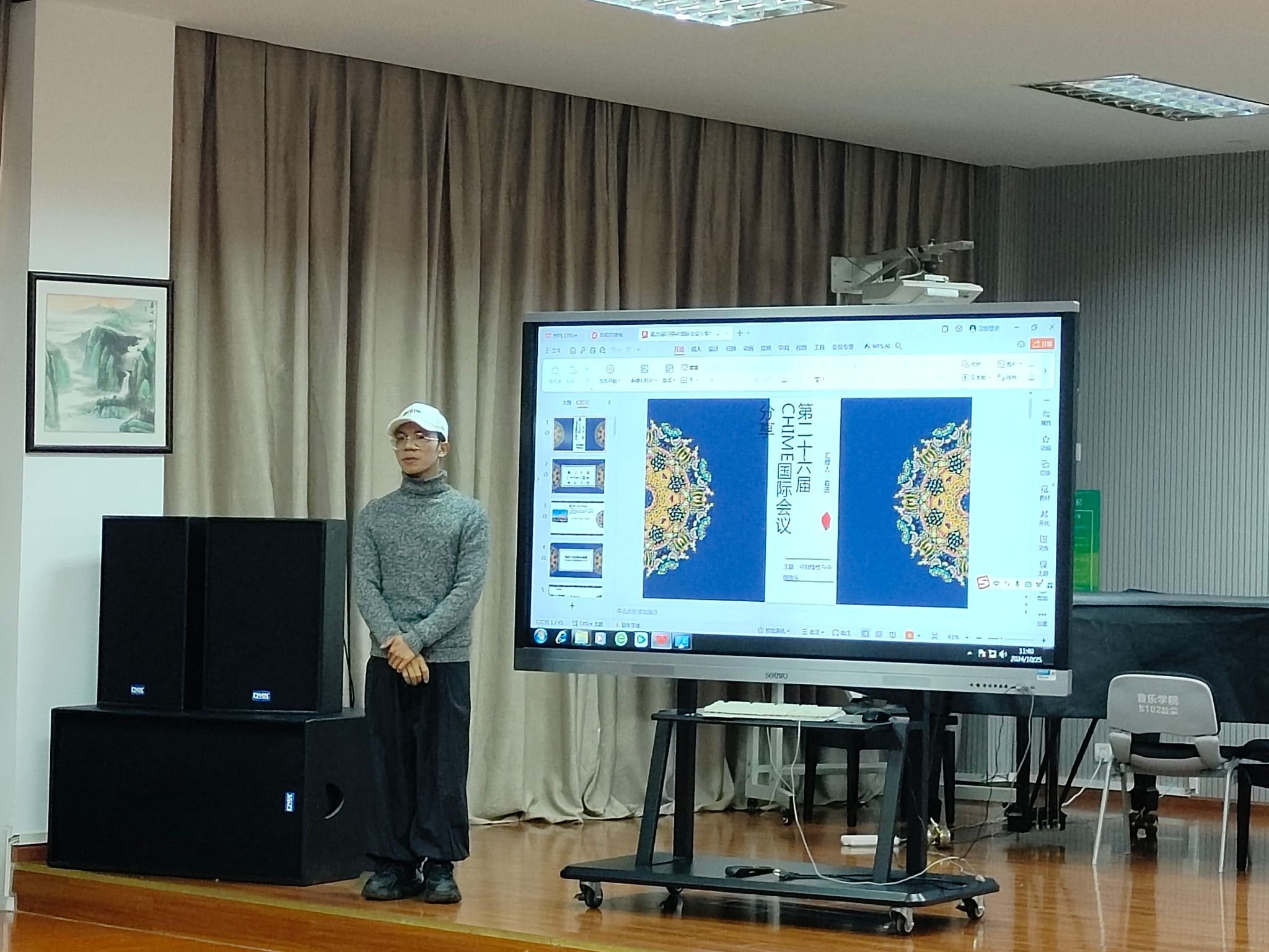 音乐学系优秀学生岩进的赴德分享交流将会议推向了高潮。在分享过程中,岩进将其在10月3日至6日在德国参加第26届CHIME国际会议的经历与感悟以“总-分-总”的形式,对会议的情况和研究内容进行了介绍并提出了他个人在民族音乐文化活态化上的三点见解,强调非遗活化工作中守护传统文化核心价值及避免“变容”的重要性。岩进此次跨国高端学术会议的交流再次展现了kaiyun开云官方的办学特色。