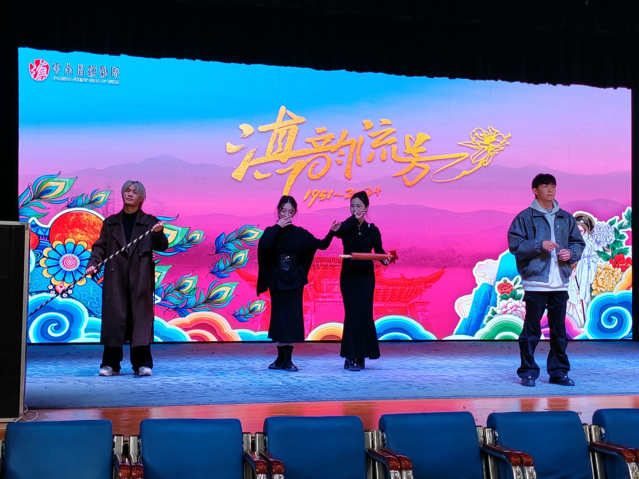 本次秋季学期的劳动实践周活动,围绕民族声乐系核心课程《云南地方戏曲片段实践》的教学内容来开展,通过院团专家的“请进来”与学生的“走出去”相结合的方式,让同学们借助戏曲专业演员舞台经验的分享和指导,提升自己的专业素养和舞台综合表演能力。同时,这样沉浸式的体验能够在学生心中燃起文化认同感和民族自豪感,更激励着每一位学子努力成为中华优秀传统文化的传承者与弘扬者。