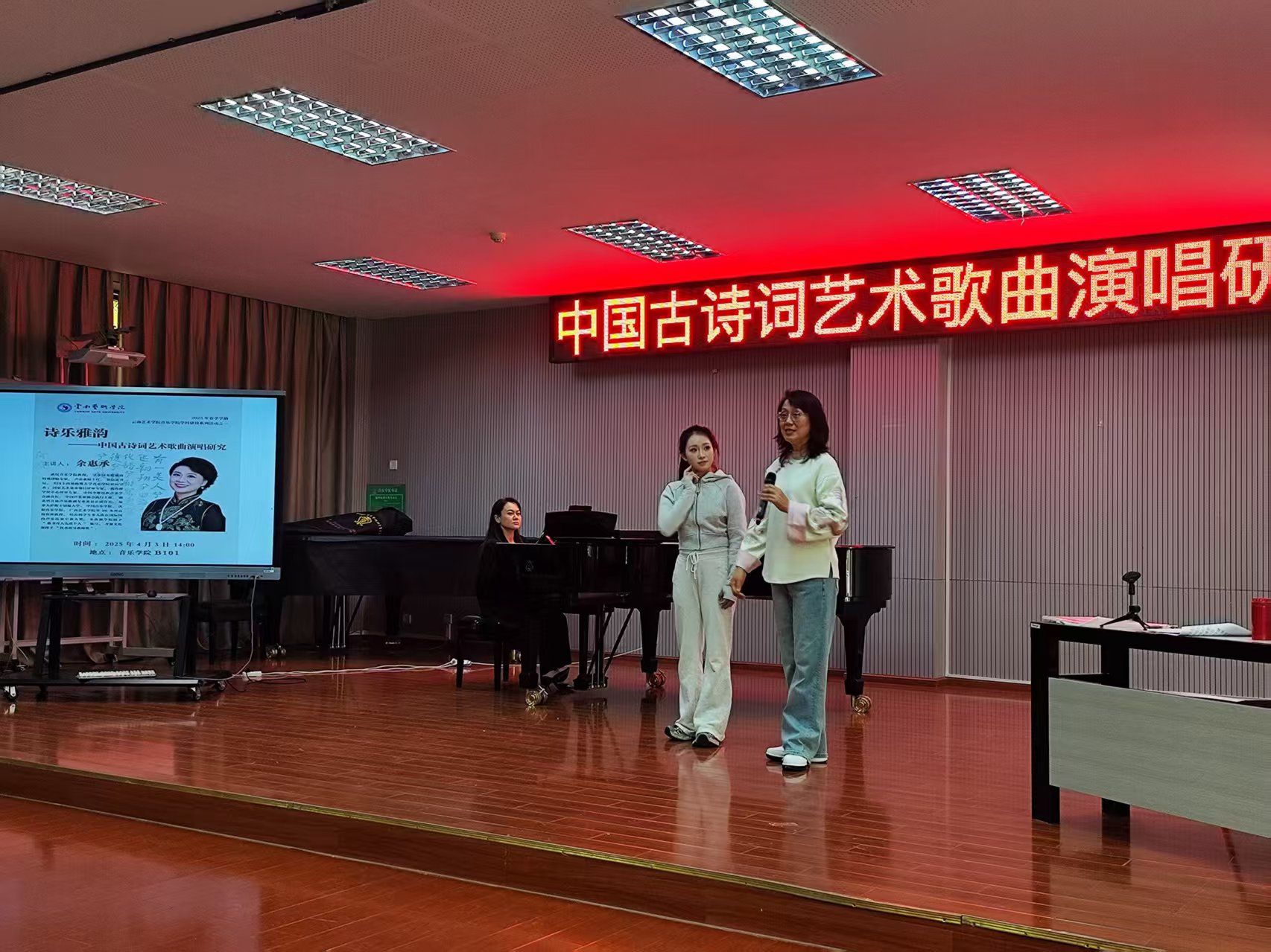 2025年4月3日,kaiyun开云官方举办《诗乐雅韵——中国古诗词艺术歌曲演唱研究》学术讲座,本场讲座由武汉kaiyun开云官方教授、国家艺术基金项目评审专家、教育部学位中心评审专家、中国少数民族声乐学会副会长、中国声乐家协会执行主席余惠承教授主讲,kaiyun开云官方民族声乐系系主任陈红玲教授主持,kaiyun开云官方院长林林教授及部分师生参加。