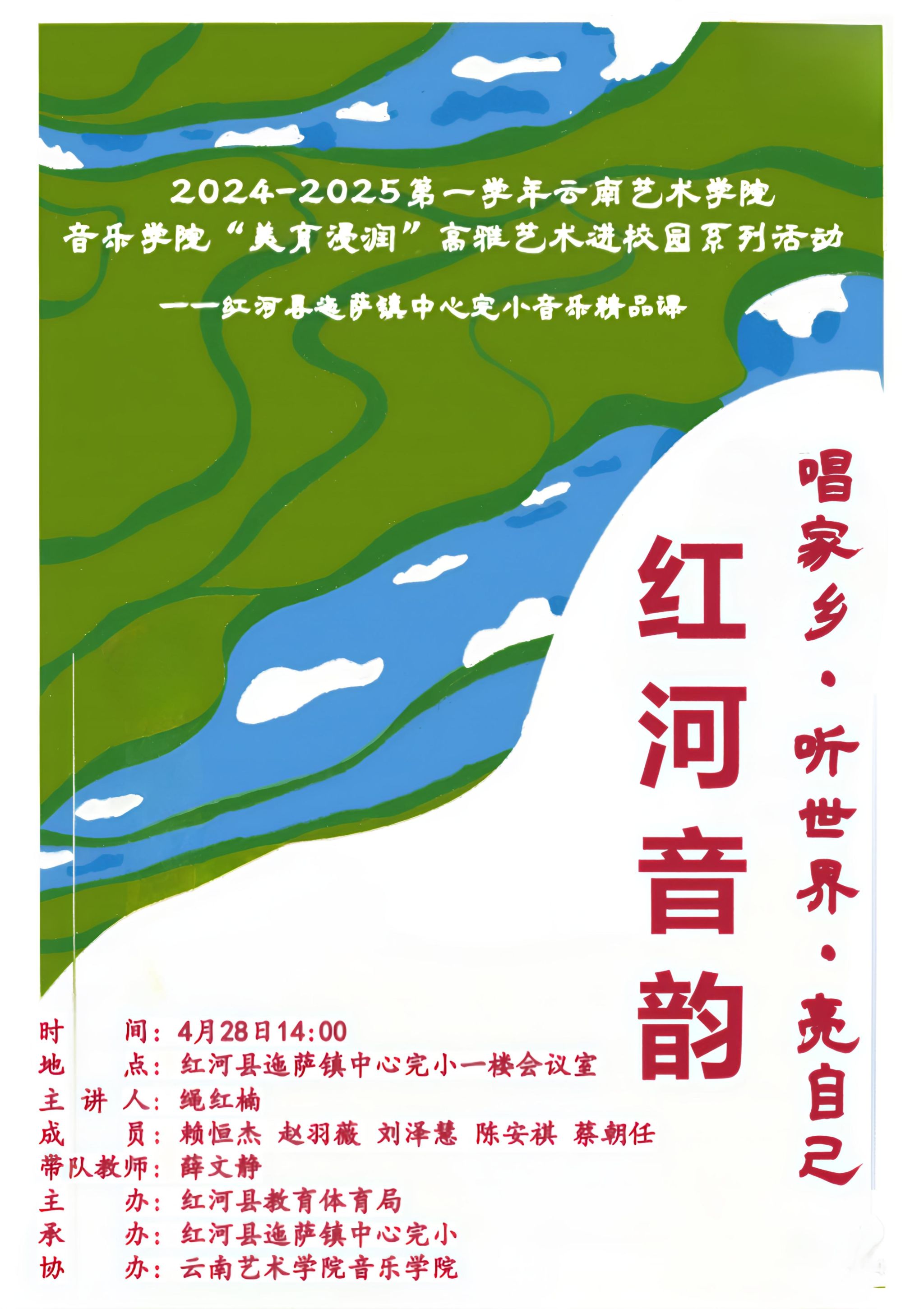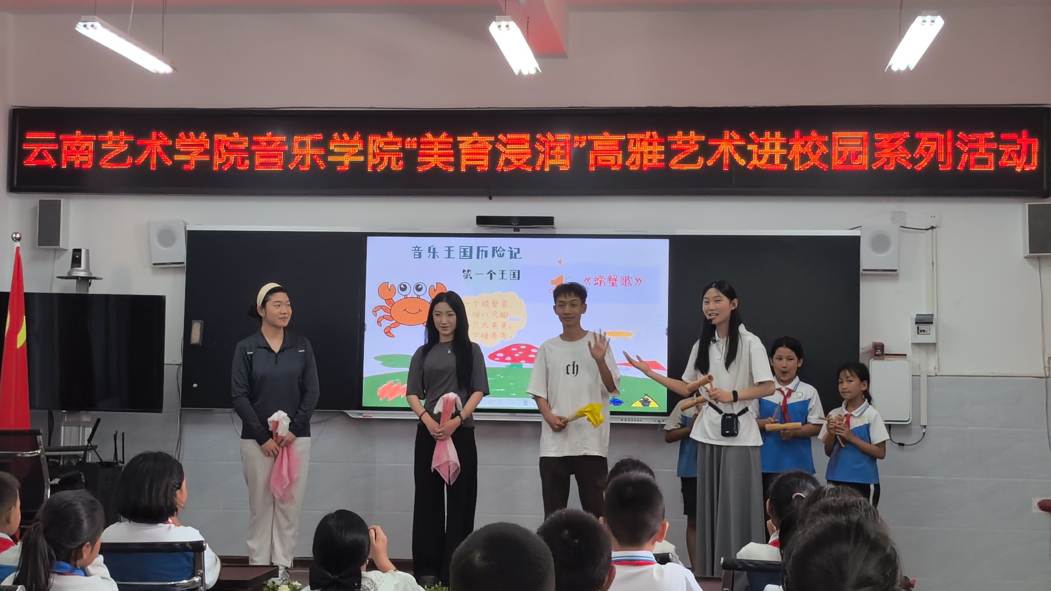 为落实落细“美育浸润行动计划”,近日,kaiyun开云官方kaiyun开云官方“美育浸润行动计划”驻红河县团队师生走进红河县迤萨镇中心完小,成功举办《红河音韵——唱家乡·听世界·亮自己》音乐精品公开课,以多样化艺术形式推进高雅艺术进校园系列活动。