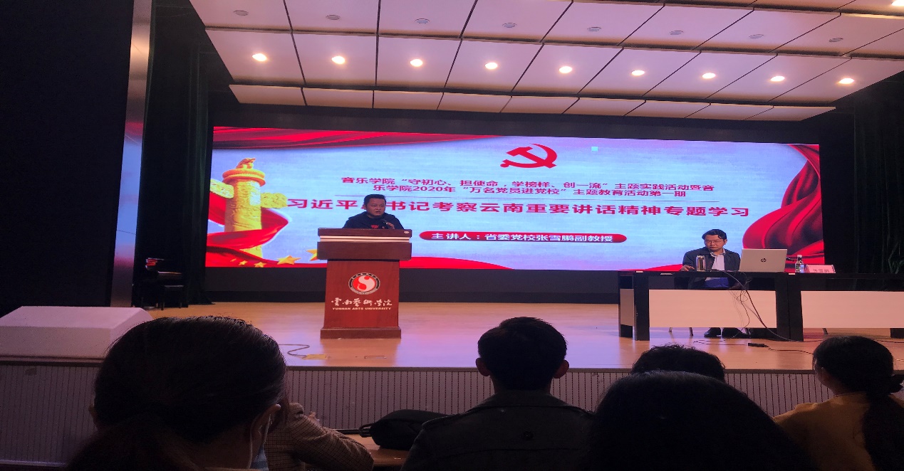 10月15日,kaiyun开云官方举行“守初心、担使命,学榜样、创一流”主题实践活动暨kaiyun开云官方2020年“万名党员进党校”主题教育活动第一期讲座,邀请到云南省委党校张雪鹏副教授到学院讲授《习近平总书记考察云南重要讲话精神》专题党课。参加专题党课学习的有kaiyun开云官方全体教职工、学生党员、发展对象、入党积极分子共243人,kaiyun开云官方党总支纳海书记主持专题党课。