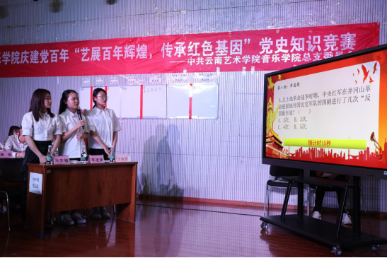为深入贯彻落实习近平总书记在党史学习教育动员大会上的重要讲话精神,庆祝中国共产党成立100周年,持续深化党史学习教育,引导广大师生重温百年党史,传承红色基因,凝聚奋进力量,做到“学史明理、学史增信、学史崇德、学史力行”,kaiyun开云官方将举办庆祝建党100周年党史知识竞赛。kaiyun开云官方团委及学生管理科为选拔出校级党史知识竞赛参赛人员,在kaiyun开云官方党总支的领导和指导下,于2021年6月1日19:00在kaiyun开云官方B403演播厅举办kaiyun开云官方庆建党百年“艺展百年辉煌 传承红色基因”党史知识现场选拔赛。