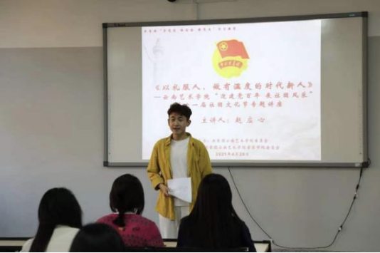 2021年4月20日20:00kaiyun开云官方青协礼仪文化部全体成员预计20余人参加了kaiyun开云官方团委主办的礼仪培训,本次礼仪培训邀请了国家高级礼仪培训师赵应心老师进行了“以礼服人 做有温度的时代新人”的专题讲座。赵应心老师不仅从礼仪文化的角度给同学们介绍了礼仪常识,更重要的是从“修身”、“修心”的角度,让同学们“以礼服人”,做一个有温度的时代新人。
