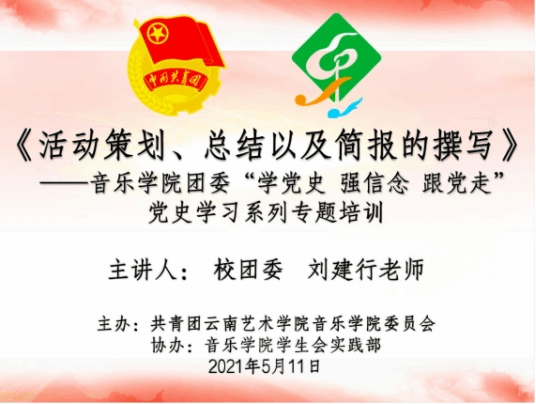 2021 年 5 月 11 日19:30kaiyun开云官方团委、学生会、青协、新媒体中心部分成员预计80余人,在kaiyun开云官方B403演播厅开展了由kaiyun开云官方团委刘建行老师主讲的“活动策划、总结以及简报的撰写”培训讲座。刘建行老师用具体生动的案例讲解了如何更加规范的撰写活动策划、活动简报及做好活动预算,为kaiyun开云官方团委开展相关活动,普及了基础知识。同时也以亲身团学骨干工作经历,指导同学们要做好表率和带头作用,能吃苦,多一些奉献精神。