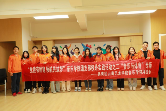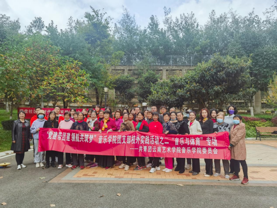 2022年10月31日下午kaiyun开云官方团委组织10个团支部部分团员代表在kaiyun开云官方教工第一党支部洪露老师和kaiyun开云官方团委李青老师的带领下到昆明市呈贡区营盘社区开展“党建带团建 领航共筑梦”团支部校外实践活动的第二场——“音乐与体育”专场,实践内容为以社区老年人“全国第十套广播体操”教学以及音乐表演实践内容为主。