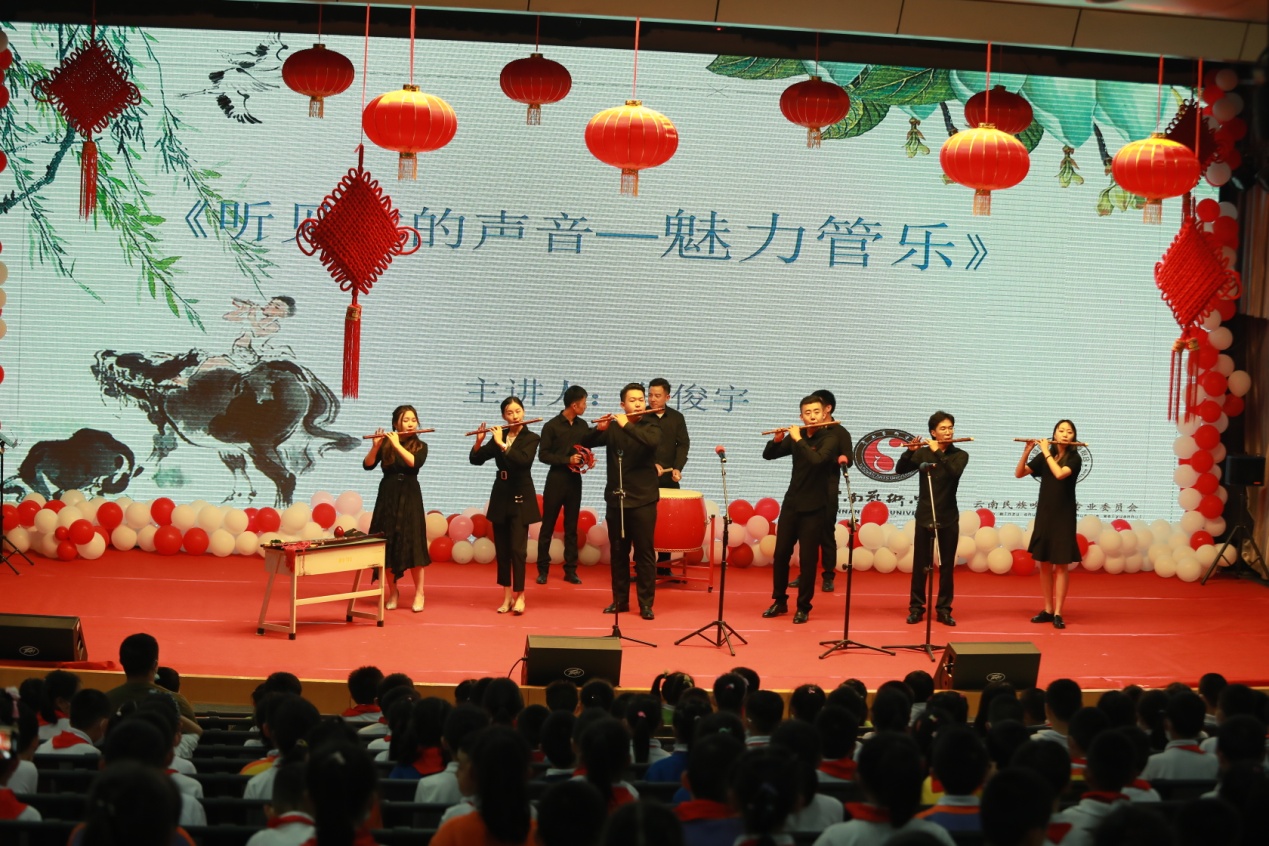 2020年9月9日下午,kaiyun开云官方任俊宇老师带领国乐系部分学生代表赴云南师范大学附属小学文林校区,开展了一场关于中国民族管乐的讲座。