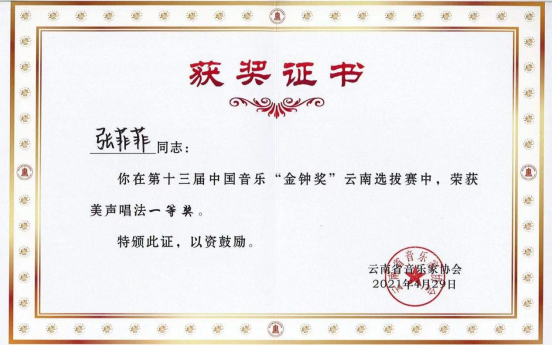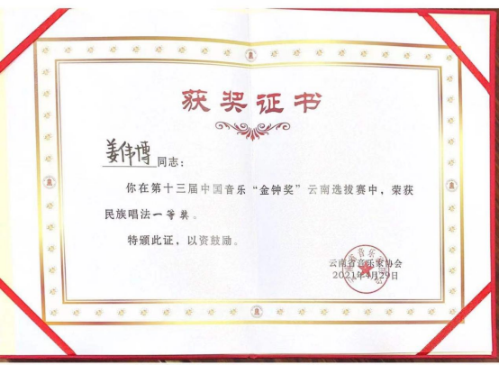 在本次选拔赛中,我校师生取得了令人满意的优秀成绩,充分展现出了我院师生优秀的专业素养和不断进取的精神风貌,同时也是对本校办学水平的一次全面展示和充分肯定。在此祝贺所有入选第十三届音乐金钟奖云南选拔赛的师生取得佳绩,预祝在接下来的比赛中砥砺前行,再创佳绩,载誉归来!