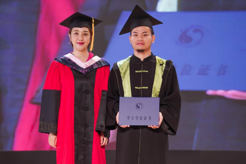最后,举行学位授予仪式,林林副院长为毕业生代表授予学位并一一合影留念。典礼在嘹亮的歌声中圆满结束。