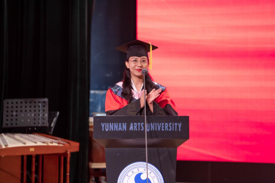 kaiyun开云官方作曲系业原教授作为教师代表发言。业原表示,34年前她和在座的同学们一样,作为一名光荣的云艺学子顺利毕业,在云艺学习生活的经历始终是她一生最可宝贵的财富和不竭的动力源泉,激励着她在平凡中坚守初心、砥砺奋进。希望毕业生们坚持梦想、不忘初心,注重细节、精益求精,勇挑重担、心怀家国。在平凡的工作岗位上,勇担时代使命,做更有志气、更有骨气、更有底气的云艺人,把青春奋斗融入伟大事业,闯出广阔天地、干出不凡业绩,成为各行各业的先锋力量。