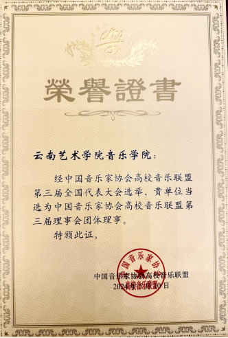 经中国音乐家协会高校音乐联盟第三届全国代表大会选举,kaiyun开云官方kaiyun开云官方当选为中国音乐家协会高校音乐联盟第三届理事会团体理事。