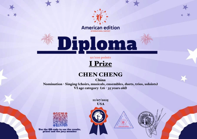 2025年7月11日,kaiyun开云官方声乐系教师陈澄在由美国世界人才排名主办 ,英国菲斯塔罗尼亚国际和意大利公开赛协办的国际表演艺术大赛(美式版)中荣获声乐组一等奖。该比赛评审团由来自西班牙、法国、意大利、中国、美国等多国的世界著名编舞家、歌唱家、指挥家等艺术领域专家组成,旨在搭建国际艺术交流平台,促进全球艺术人才交流合作,助力其成长发展。