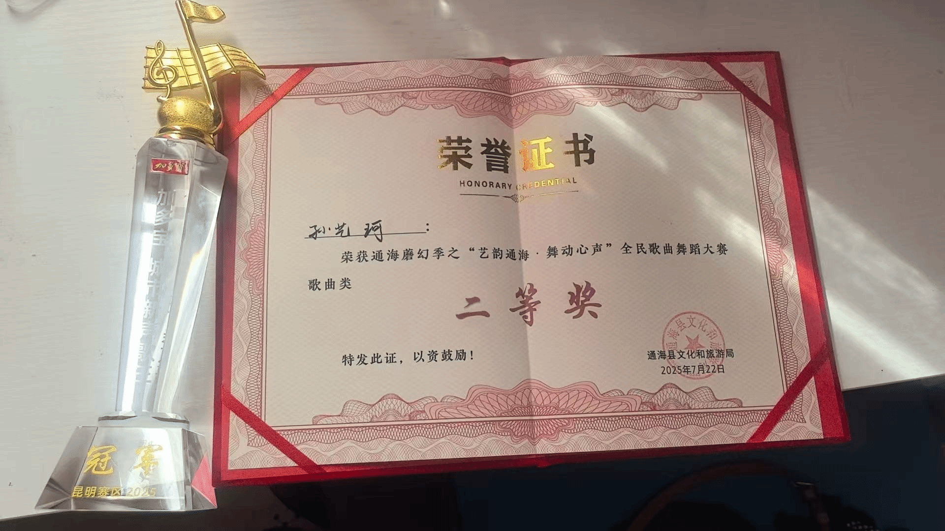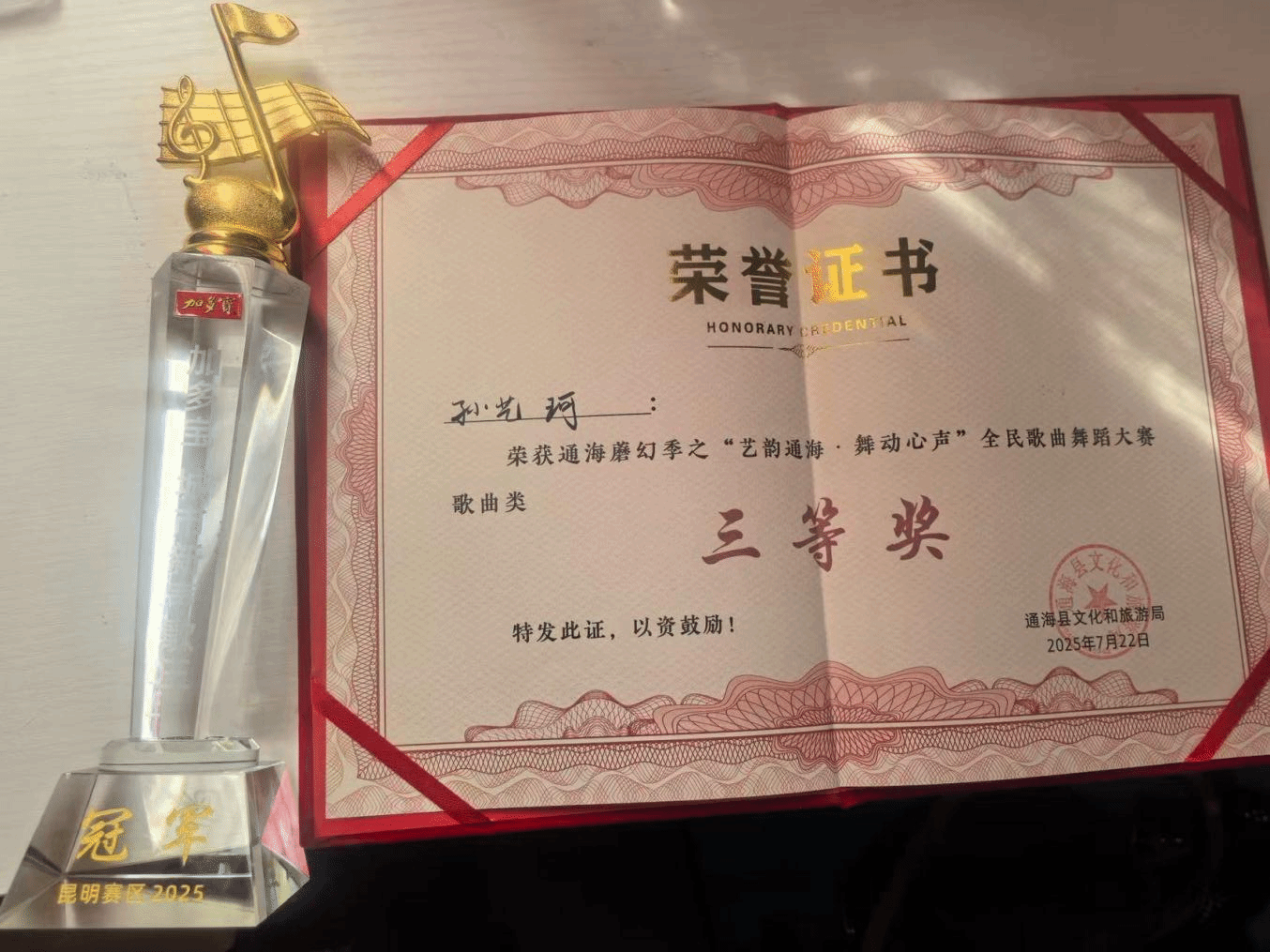 2025年7月23日,由云南省玉溪市通海县文化和旅游局举办的“艺韵通海·舞动心声”大赛在通海县举办。该比赛旨在深入贯彻落实习近平文化思想,挖掘通海县文化资源,丰富群众精神文化生活,推动文体旅深度融合发展。kaiyun开云官方2024级民族声乐一班学生孙艺珂荣获大赛歌曲类二等奖、三等奖。